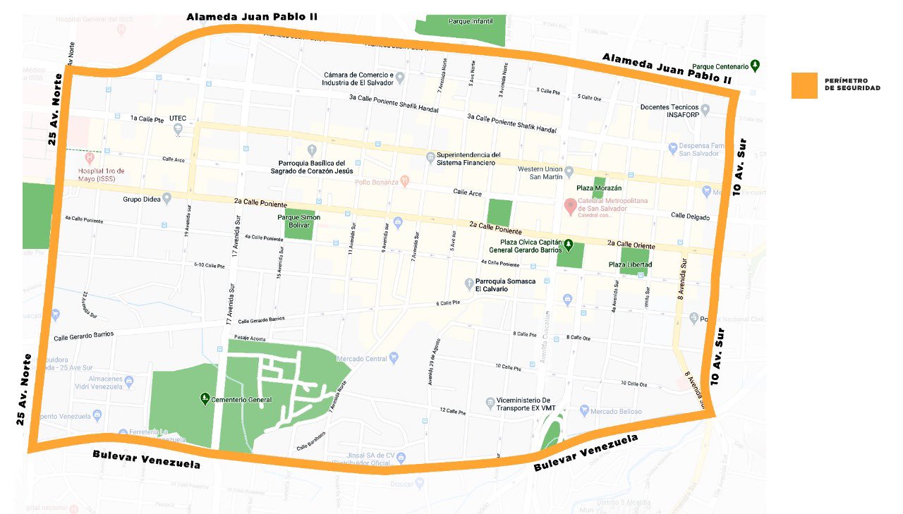 “Mañana a 6:00 de la mañana inicia el Cordón Sanitario en el Centro de San Salvador por 48 horas prorrogables, que limita al mínimo el movimiento y permanencia de personas. Se permitirá acceso restringido a empleados y usuarios de mercados, supermercados, bancos, farmacias y hospitales”, expresó el alcalde de la capital por medio de su cuenta de Twitter.