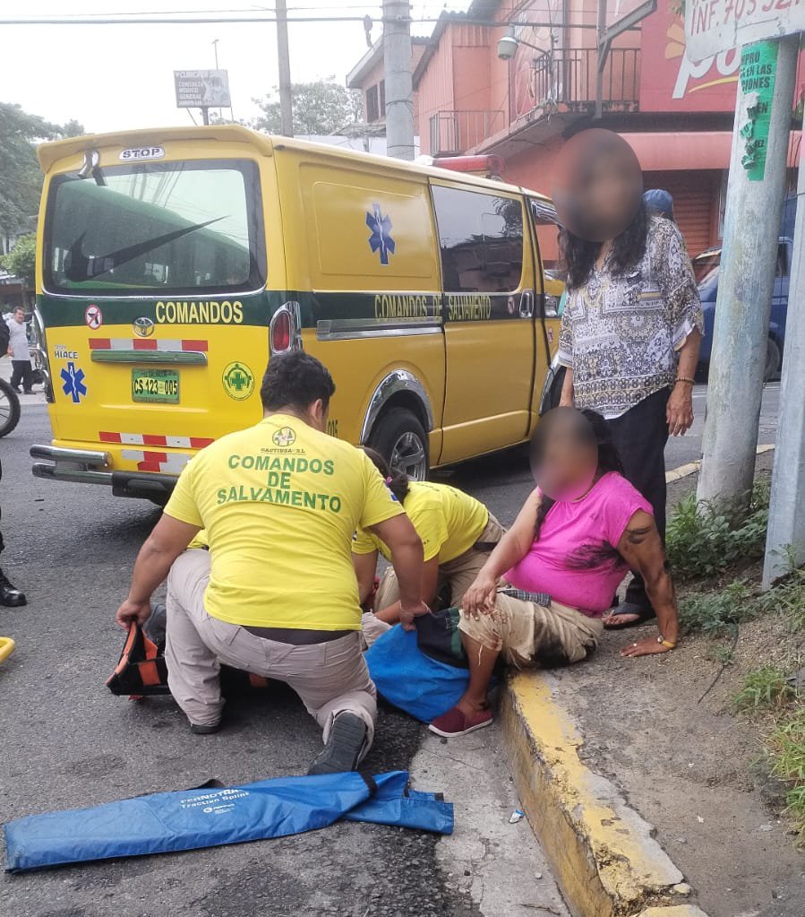 Personal de Comandos de Salvamento atendieron a una mujer que fue atropellada por una unidad del trasporte colectivo sobre el bulevar San Bartolo, Ilopango.