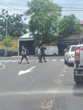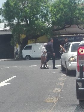 La mañana de este martes, en las redes sociales circularon una serie de imágenes que muestran a dos agentes de la PNC ayudando a cruzar la calle a una anciana.