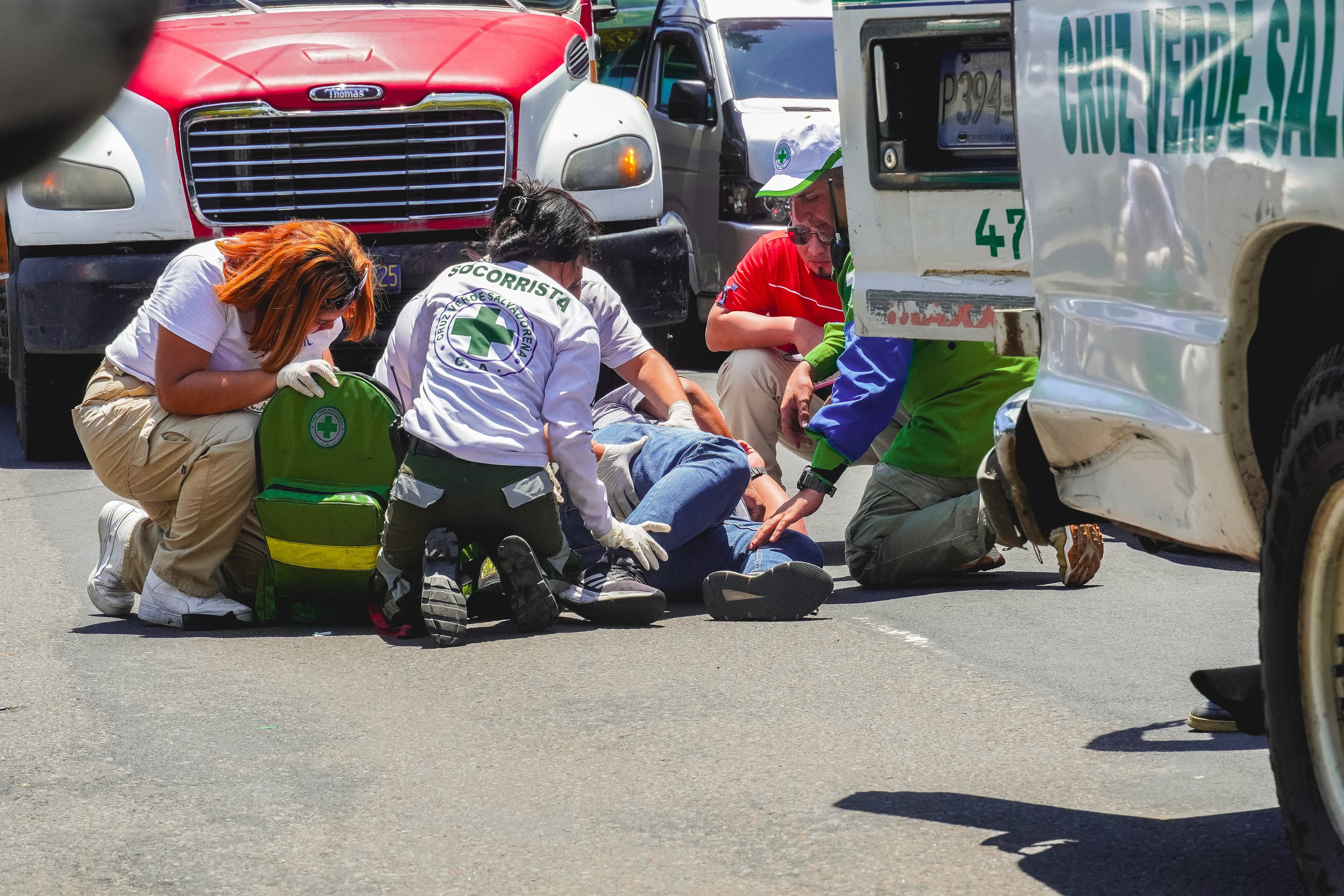 Al llegar al lugar, los rescatistas de inmediato estabilizaron al paciente y posteriormente lo trasladaron de emergencia hacia el hospital Zacamil.