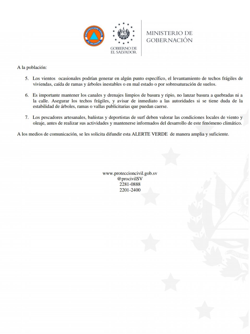 Autoridades Protección Civil tomaron su decisión tras el informe del Ministerio de Medio Ambiente y Recursos Naturales (MARN) donde “se prevé lluvias intensas tipo temporal que podrían causar impactos”.