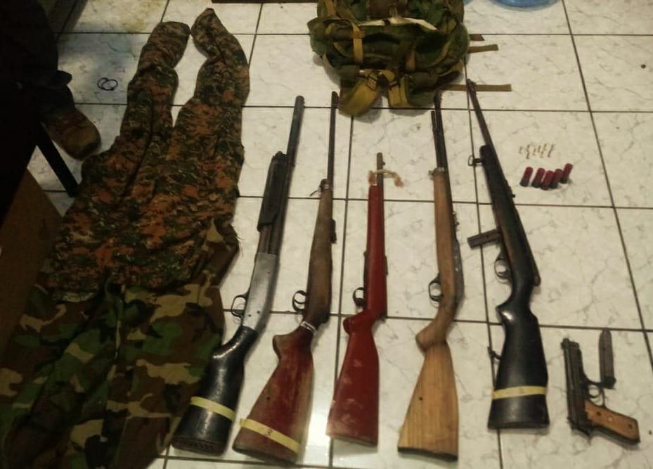 La PNC confirma que entre las incautaciones hechas a estos delincuentes, se encuentran rifles fusiles calibres 22 milímetros y vestimentas similares a las de uso militar.