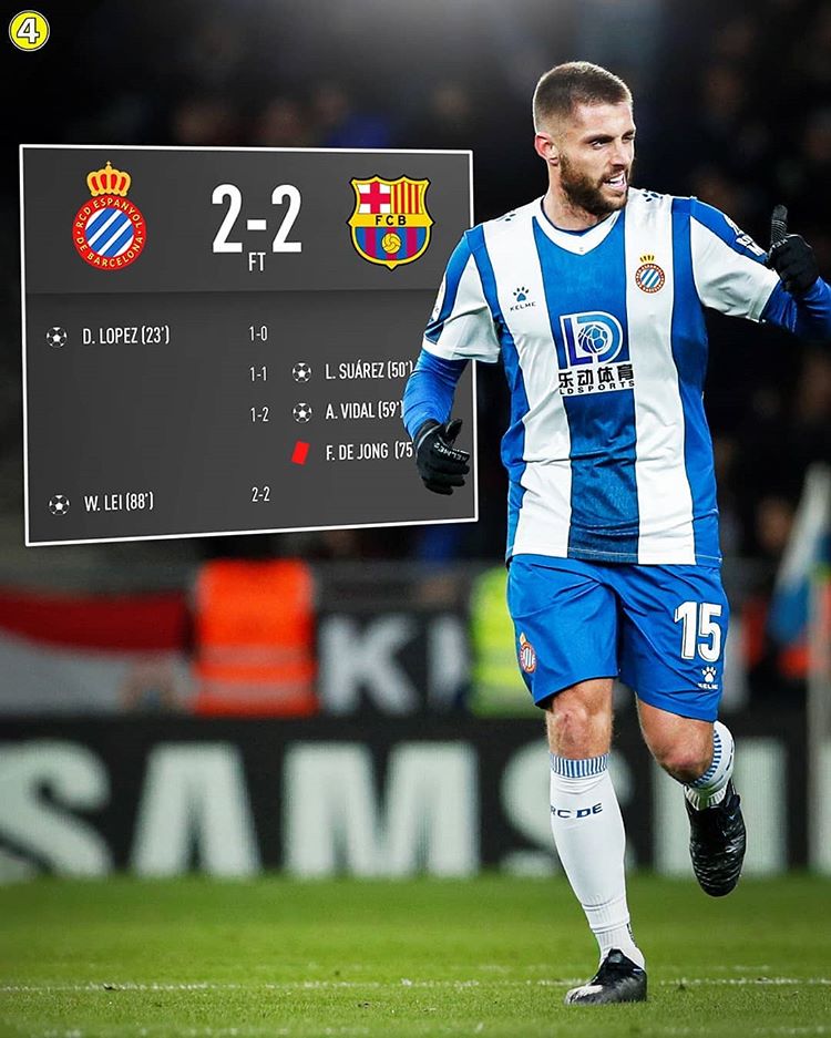 Ánimo y espacios para el Espanyol. Lo aprovechó Wu Lei para firmar el 2-2. El Barcelona empata ante el Espanyol y ahora es líder en La Liga junto al Real Madrid.