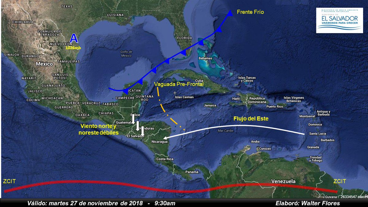 El Salvador sigue bajo la influencia de vientos de componente Norte y noreste ligeramente acelerados principalmente en zonas altas y escampadas.