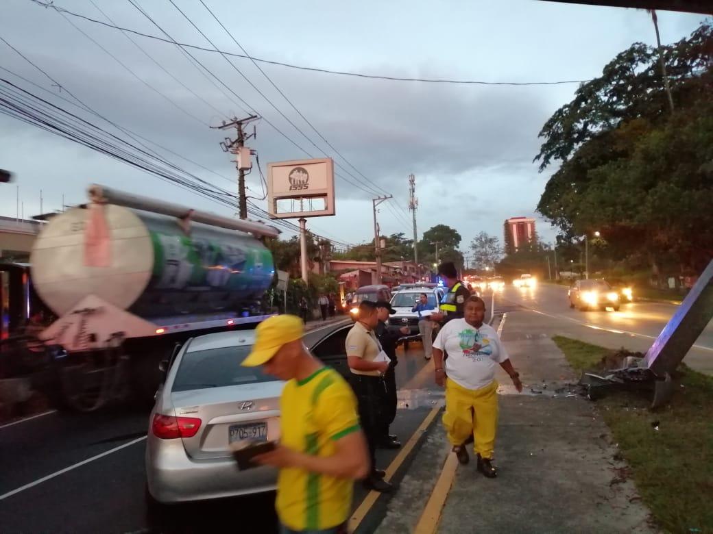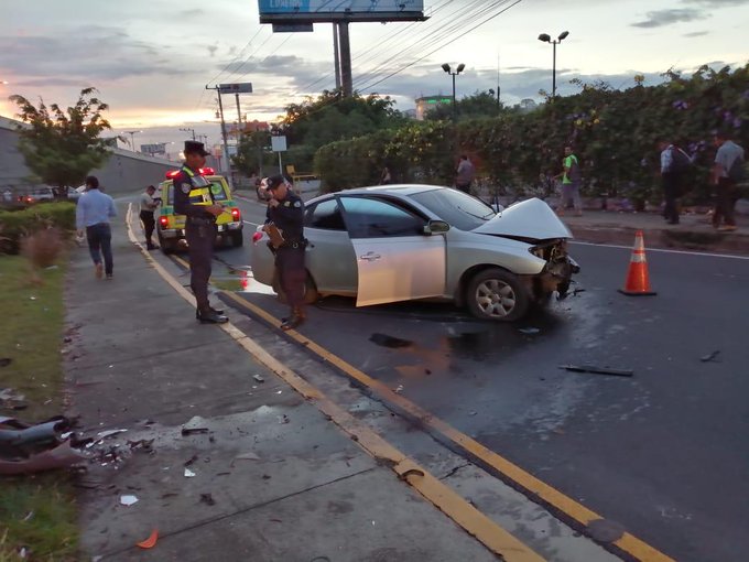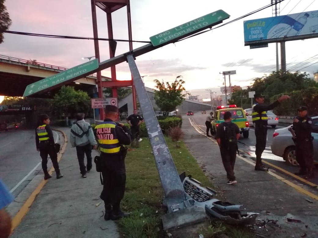 Según el reporte, el conductor del vehículo tipo sedán color gris placas P P-705 917 impactó contra el poste, el cual indica el desvío hacia el bulevar Los Próceres o alameda Manuel Enrique Araujo. El impacto fue tal que el automóvil quedó en sentido contrario.