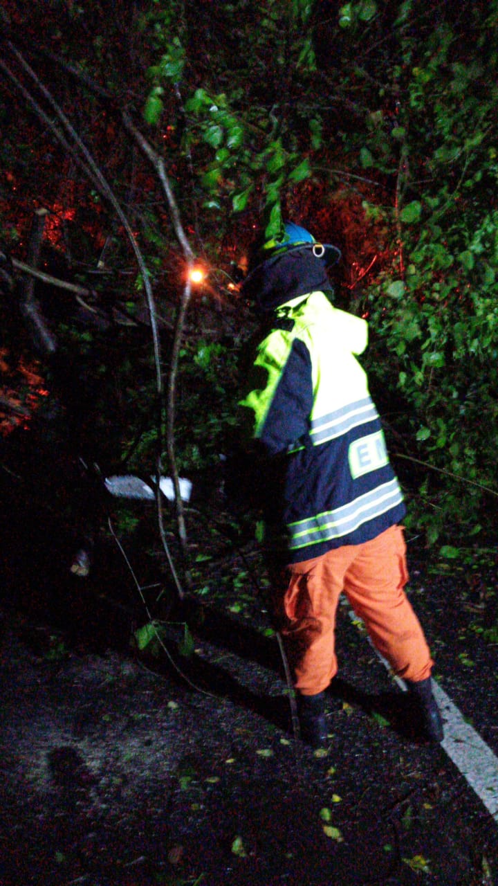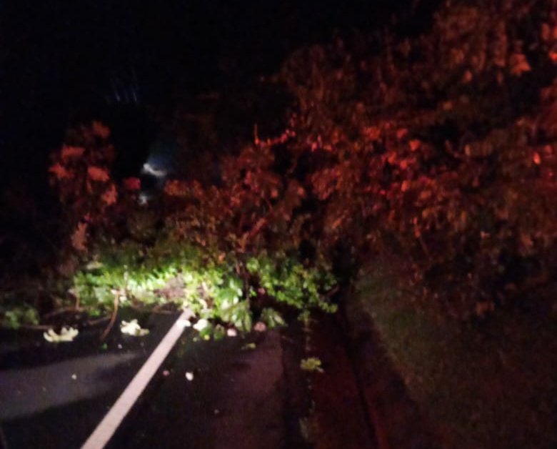 Las lluvias que azotaron al país en las últimas horas, derribaron un árbol de cinco metros de altura sobre la carretera Longitudinal del Norte.