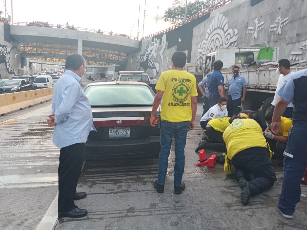 Se trata de un motociclista quien, según reporte de testigos, impactó contra la parte de un camión, cayendo sobre el pavimento tras el golpe.