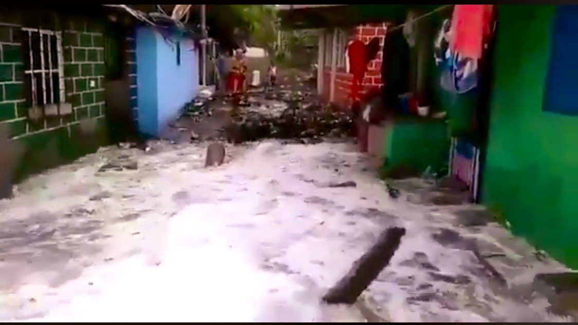 En las redes sociales han comenzado a circular imágenes que muestran los estragos que han causado las fuertes olas en comunidades aledañas a la playa Conchalío, ubicada en el departamento de La Libertad.