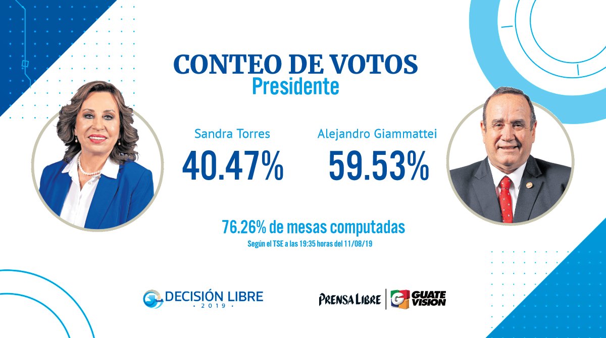 Los primeros resultados dan como ganador a Giammattei, con 76 por ciento de los votos escrutados.