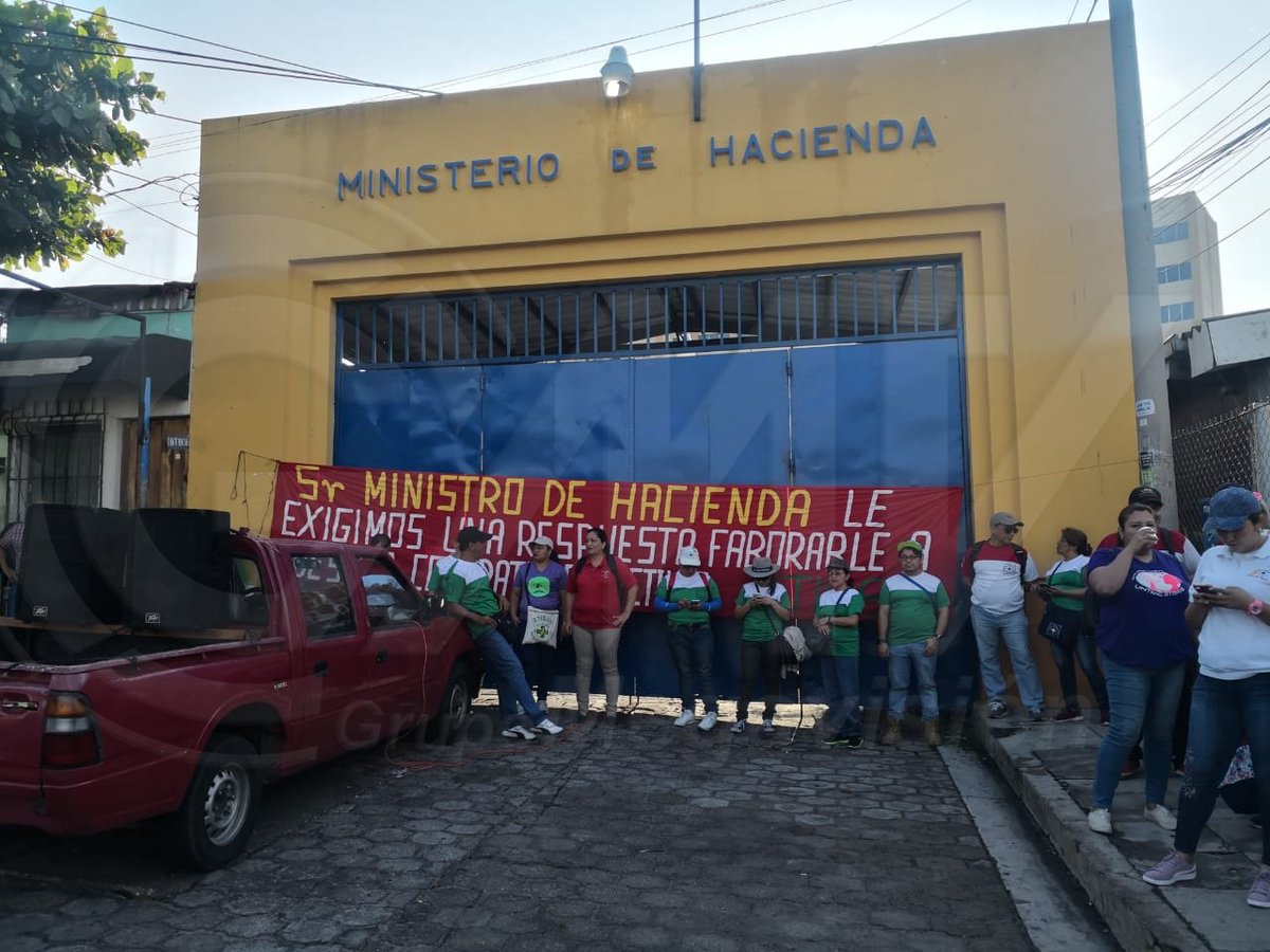 Autoridades del Ministerio de Hacienda (MH) informaron que la sede central de la institución se encuentra cerrada debido a la protesta de sindicalistas para exigir la aprobación del contrato laboral y un aumento salarial.