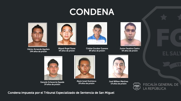 La sentencia condenatoria fue impuesta por el Juzgado Especializado de Sentencia de San Miguel.