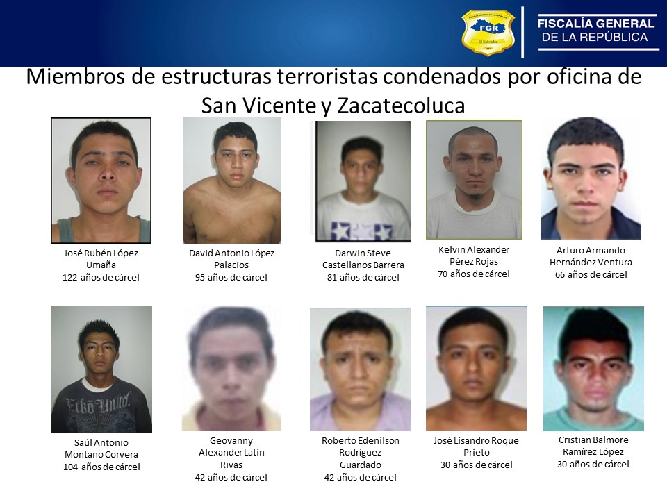 La Fiscalía General de la República (FGR) informa que miembros de dos estructuras terroristas que operaban en diferentes municipios de San Vicente y San Luis Talpa, este último del departamento de La Paz, fueron declarados responsables de acabar con la vida de seis personas, entre estas mujeres.