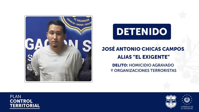 En otro hecho, la PNC capturó en las últimas horas en San Miguel a José Antonio Chicas Campos, alias el Exigente, miembro activo de un grupo delincuencial y de quien posee 26 órdenes de captura por diversos delitos.
