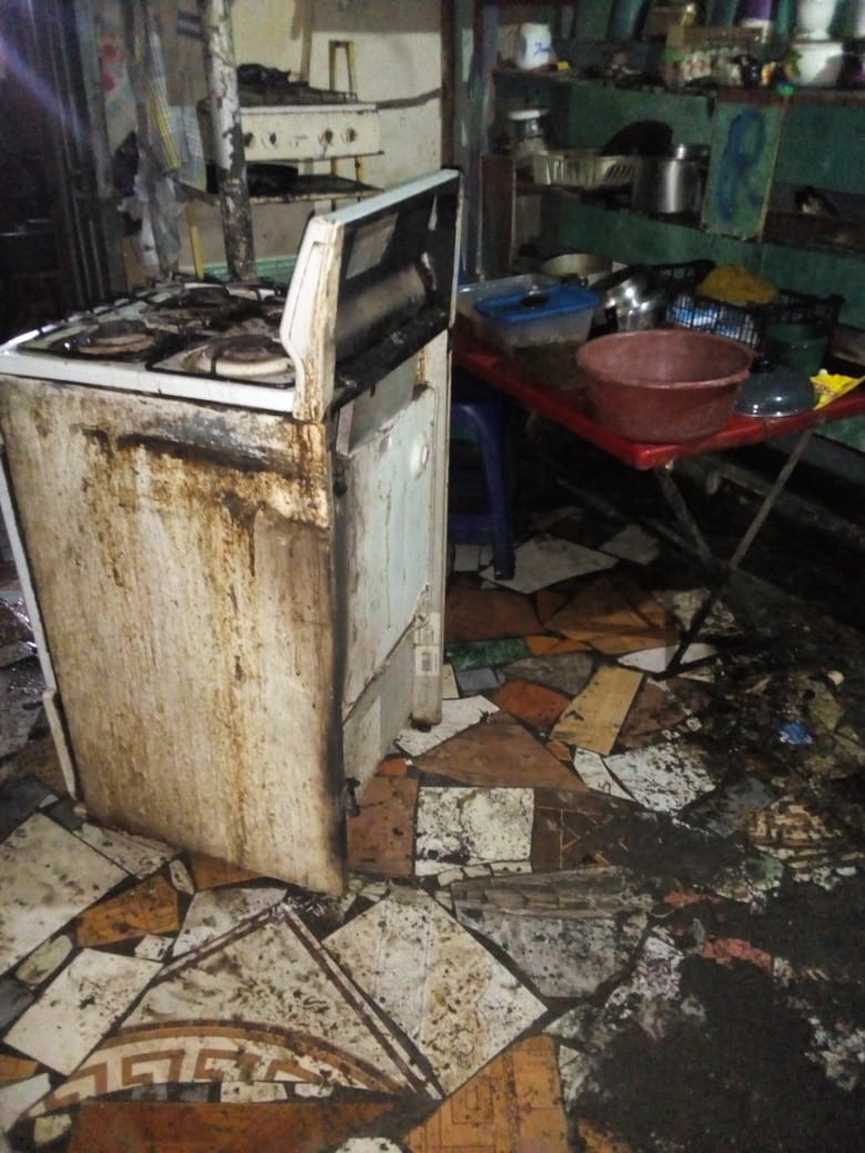 Según miembros de la institución, el siniestro, donde tres personas resultaron heridas, ocurrió debido a la explosión de un cilindro de gas de 25 libras.