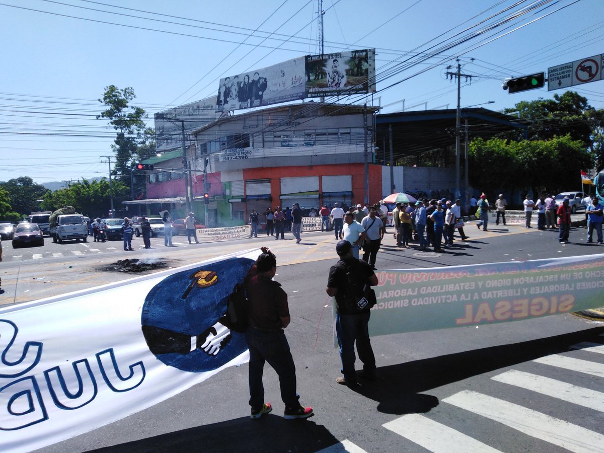 Miembros de varios sindicatos del sector público habían bloqueado el paso en ambos sentidos de la Alameda Juan Pablo II, a la altura del centro de Gobierno en San Salvador.