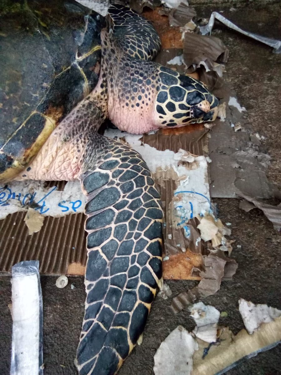 Tras el reporte, y luego de que los guardas y biólogos que estaban haciendo un recorrido rutinario en la zona llegaron al lugar, notaron que la tortuga tiene una inflamación severa en el cuello y dilatación en el área del vientre.
