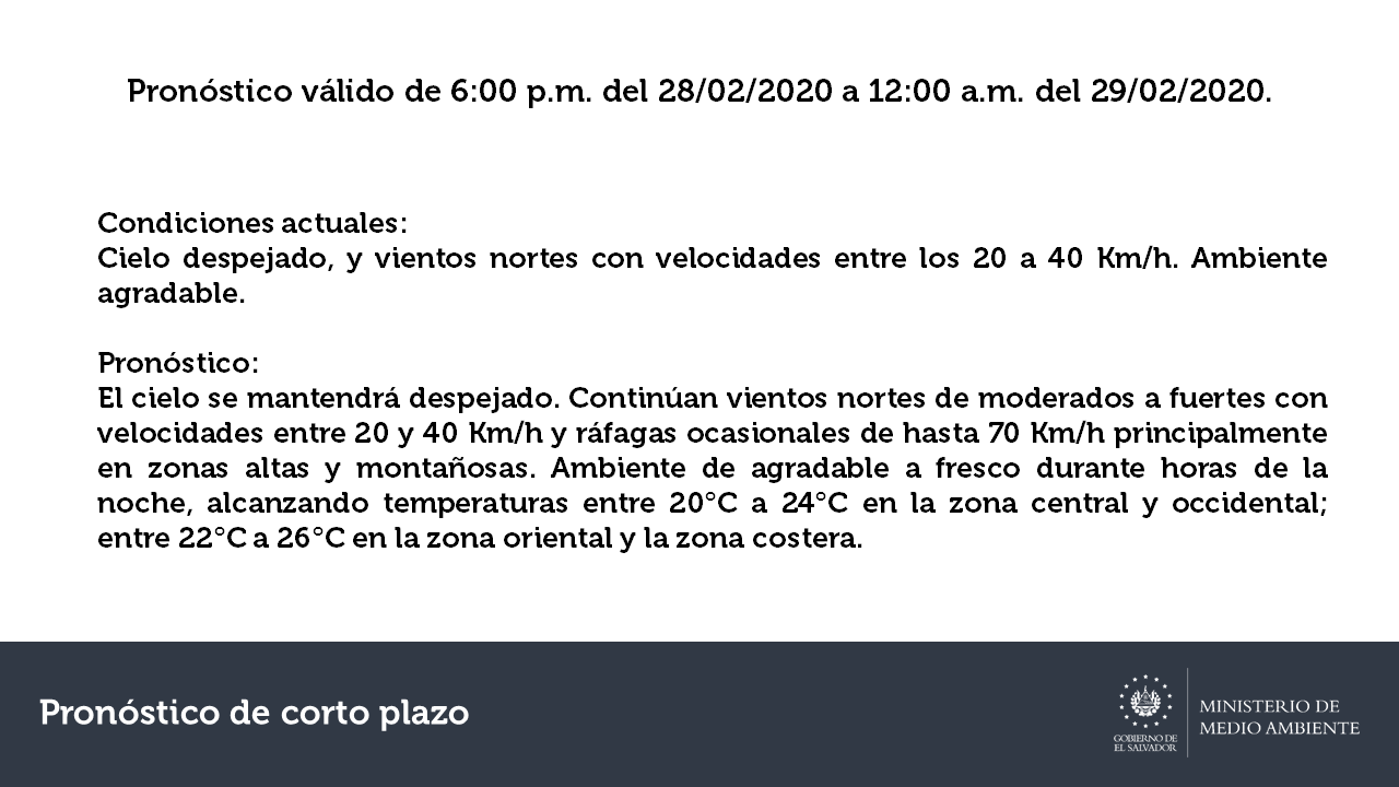 Esta noche de viernes, los vientos de moderados a fuertes continuarán azotando al país, dijeron elementos del Ministerio de Medio Ambiente y Recursos Naturales (MARN) en su informe sobre el clima.